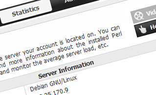 This section will offer you detailed information about the web server your account is hosted on. You can see the OS, the physical IP and the current PHP/Perl/MySQL versions used, find more info about the installed Perl modules and the incoming and outgoing mail servers, keep an eye on the server load, etc.